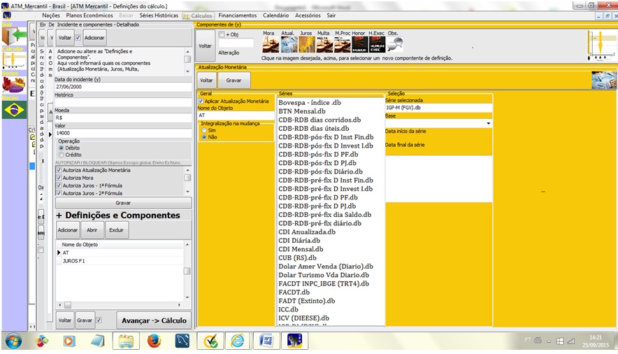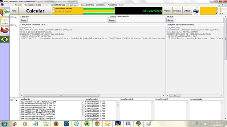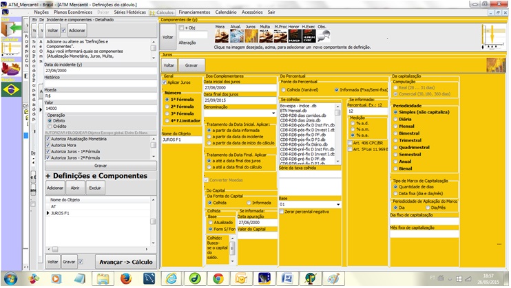 - Cálculo de juros remuneratórios e moratórios, com