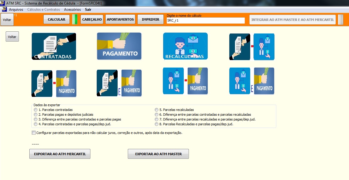 - Exportação do cálculo para o editor de textos (Word),